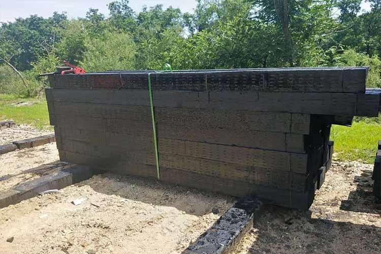 1、木材采用是強度較高和較耐用的樟子松木和落葉松木,把木材切割成標準的尺寸,這時(shí)的木枕我們稱(chēng)為素枕;素枕要求要規整、四面見(jiàn)線(xiàn)。