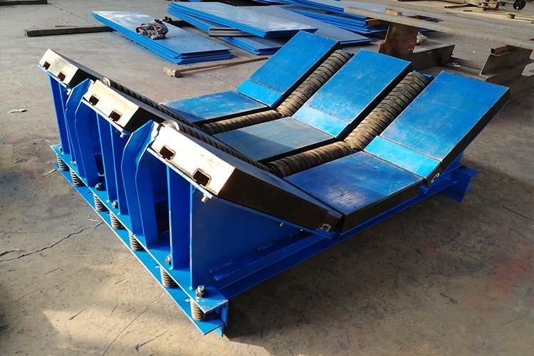 皮帶機緩沖床主要用于皮帶機導料槽下方的落料口處,當物料下落時(shí),緩沖床利用自身彈性對物料下落到皮帶上的沖擊力進(jìn)行處理,使沖擊力達到很小,以保證皮帶機正常運行。皮帶機緩沖床的表層緩沖條擁有五百萬(wàn)分子量的高分子聚乙烯板面,該高板于皮帶呈面面接觸,使潤滑性達到很高,摩擦系數降至很低。