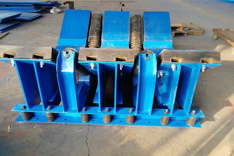 1、皮帶緩沖床主要由緩沖支架和緩沖滑條組成,緩沖滑條主要三部分組成,高分子量聚乙烯板(井下黑色阻燃)、彈性橡膠(阻燃抗靜電)、鋼構等。