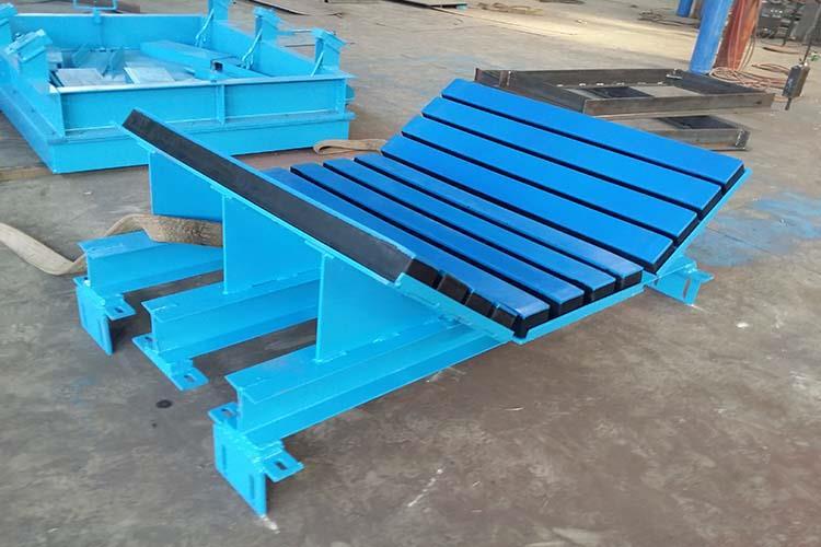 1、主要用途:應用于帶式輸送機受料點(diǎn)部位,是緩沖托輥的很好的替代品,其主要作用是支撐和保護輸送帶,可有效的避免物料下落時(shí)對輸送帶的沖擊,防止輸送帶的跑偏。