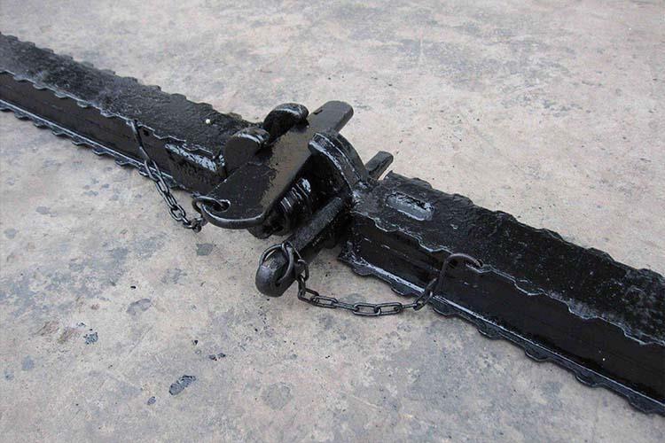 鉸接頂梁是煤礦巷道中常用的支護頂梁,其長(cháng)度比較短,帶有鉸接連接頭,它可以與帶有鉸接頂蓋的各種類(lèi)型的單體液壓支柱配合使用組成金屬支架,供煤礦的水平及緩傾斜回采工作面支護使用。鉸接頂梁能懸臂支護工作面輸送機上面的頂板,使煤壁與支柱間有較大的空間,從而為采用新型采煤機械和可彎曲輸送機,實(shí)現采煤機械化提供條件。