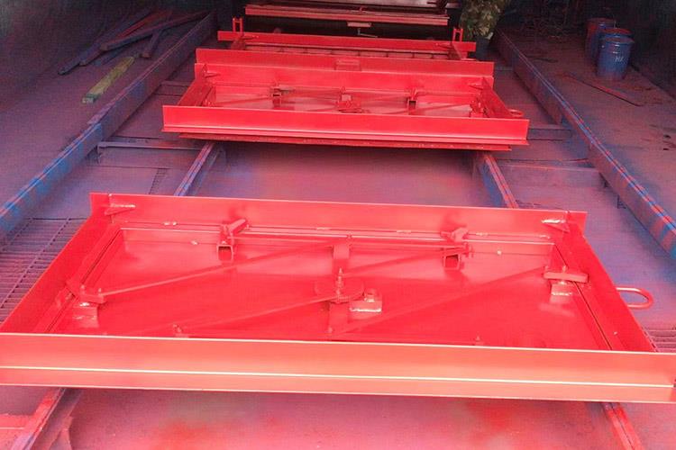 避難硐室密閉門(mén)使用對稱(chēng)的方式進(jìn)行安裝,它的每一個(gè)安裝件都是使用鋼材料來(lái)焊接成的。避難硐室密閉門(mén)的門(mén)扇是由井字結構來(lái)進(jìn)行焊接的,反風(fēng)的主要裝置是采用鋼管來(lái)插拴的,安裝的時(shí)候在合頁(yè)處涂上潤滑油,保證使用的靈活性。斜風(fēng)井防爆門(mén)關(guān)門(mén)時(shí),各部件反向擺動(dòng),到關(guān)閉狀態(tài)時(shí)成矩形狀態(tài)。